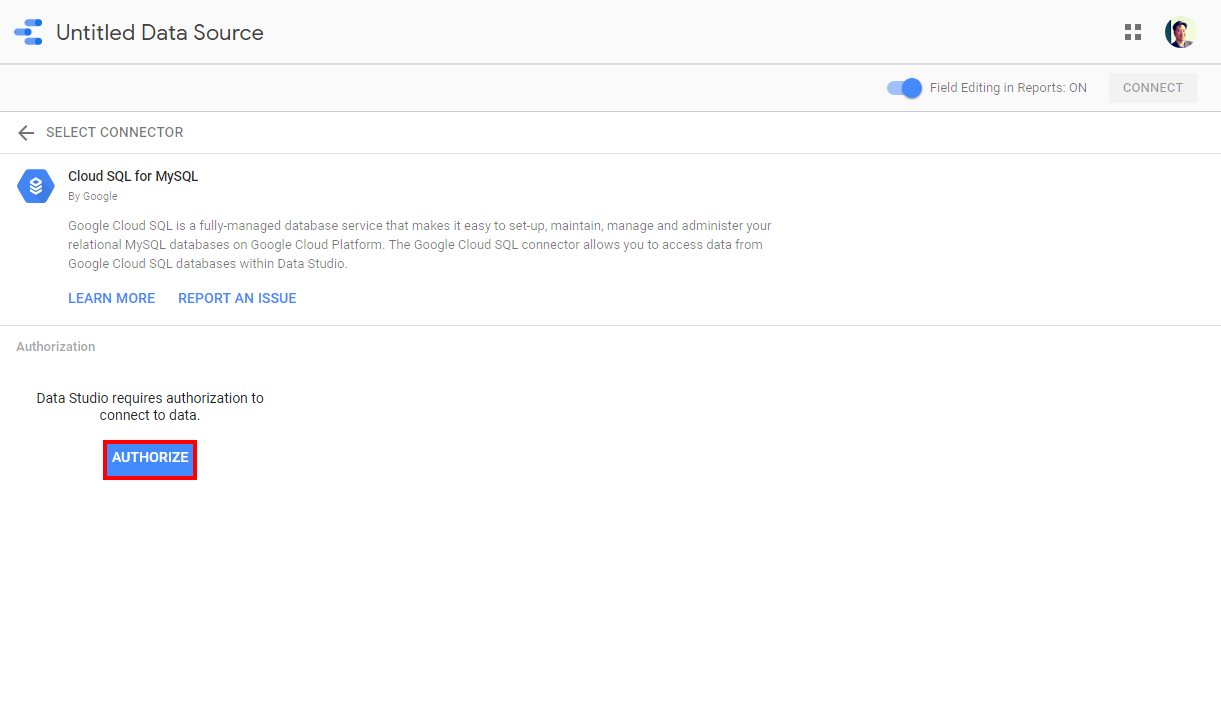 STEP 2. Select ""Cloud SQL for MySQL" to setup a data source from MySQL.